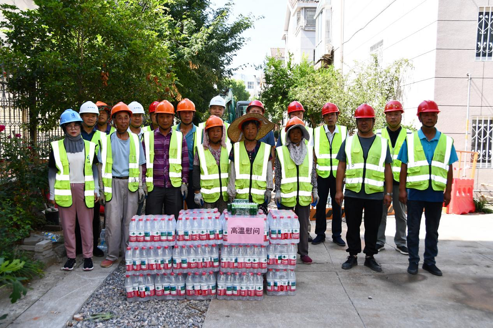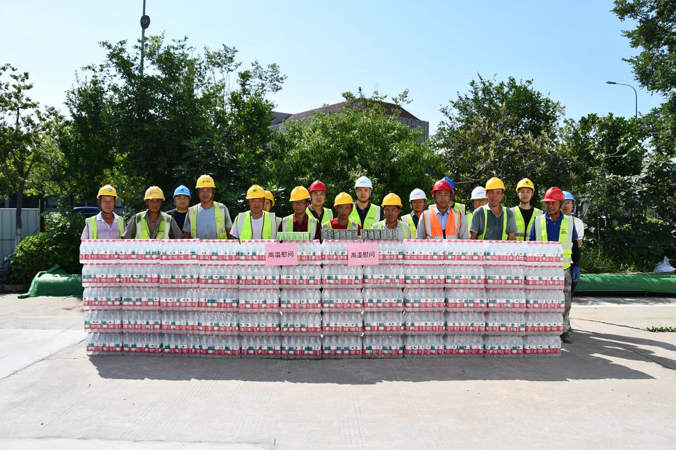 在虹橋新村東區(qū)和尚城一品污水管網(wǎng)更新改造工程項(xiàng)目現(xiàn)場,一行人向戰(zhàn)高溫、斗酷暑、堅(jiān)守工程項(xiàng)目建設(shè)崗位一線的建設(shè)者們道一聲感謝、送一份清涼,感謝他們?yōu)槲沂泄┡潘踩八h(huán)境治理工作作出的貢獻(xiàn),同時(shí)詳細(xì)詢問工程進(jìn)展、人員作息及防暑措施配備情況,叮囑施工人員要增強(qiáng)安全意識(shí)、科學(xué)防護(hù),并強(qiáng)調(diào)參建單位需合理調(diào)配作業(yè)時(shí)間,配齊防暑藥品及應(yīng)急物資,全力保障施工安全。