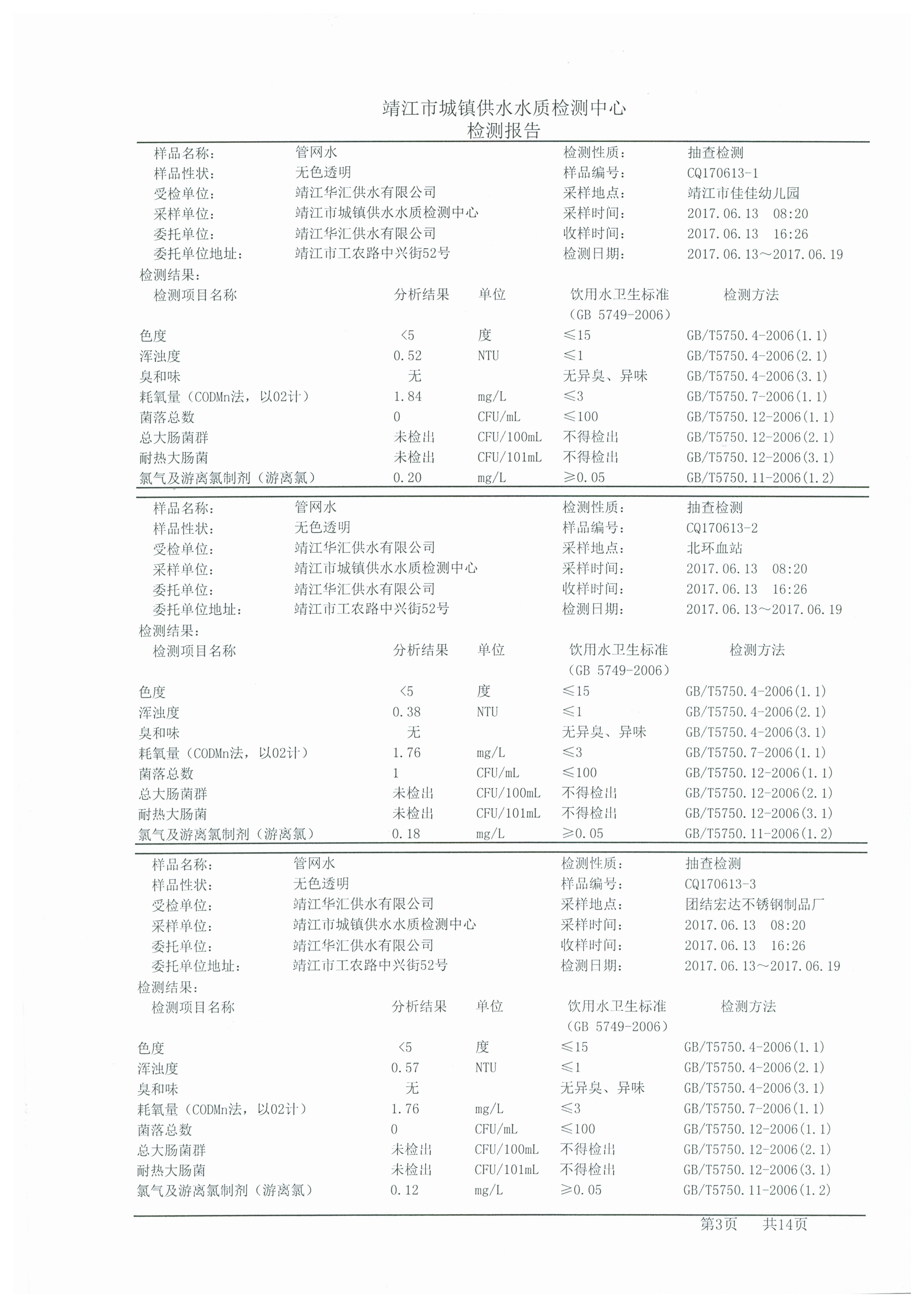 管網(wǎng)水質(zhì)檢測(cè)報(bào)告2017.06.13