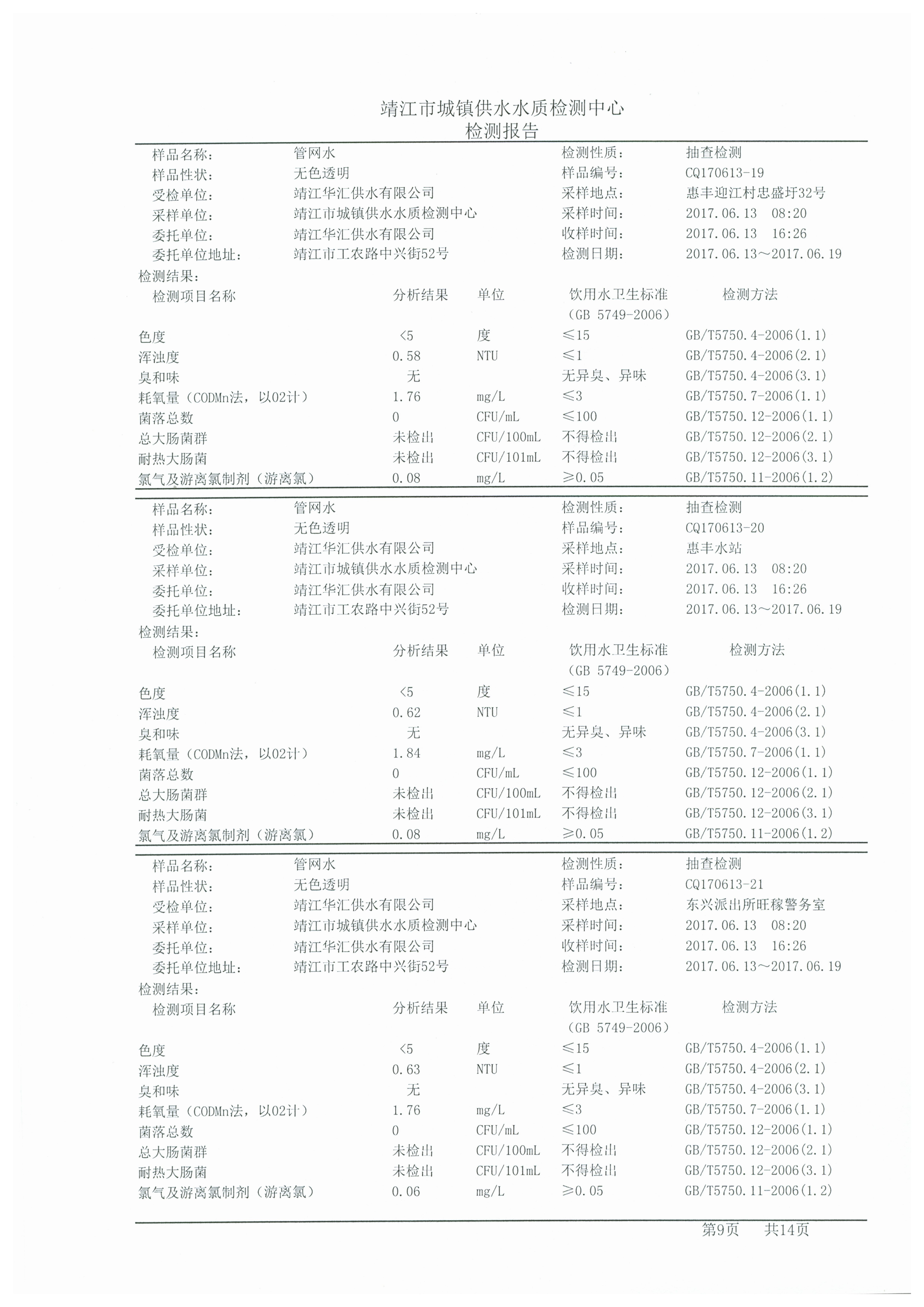 管網(wǎng)水質(zhì)檢測報告2017.06.13