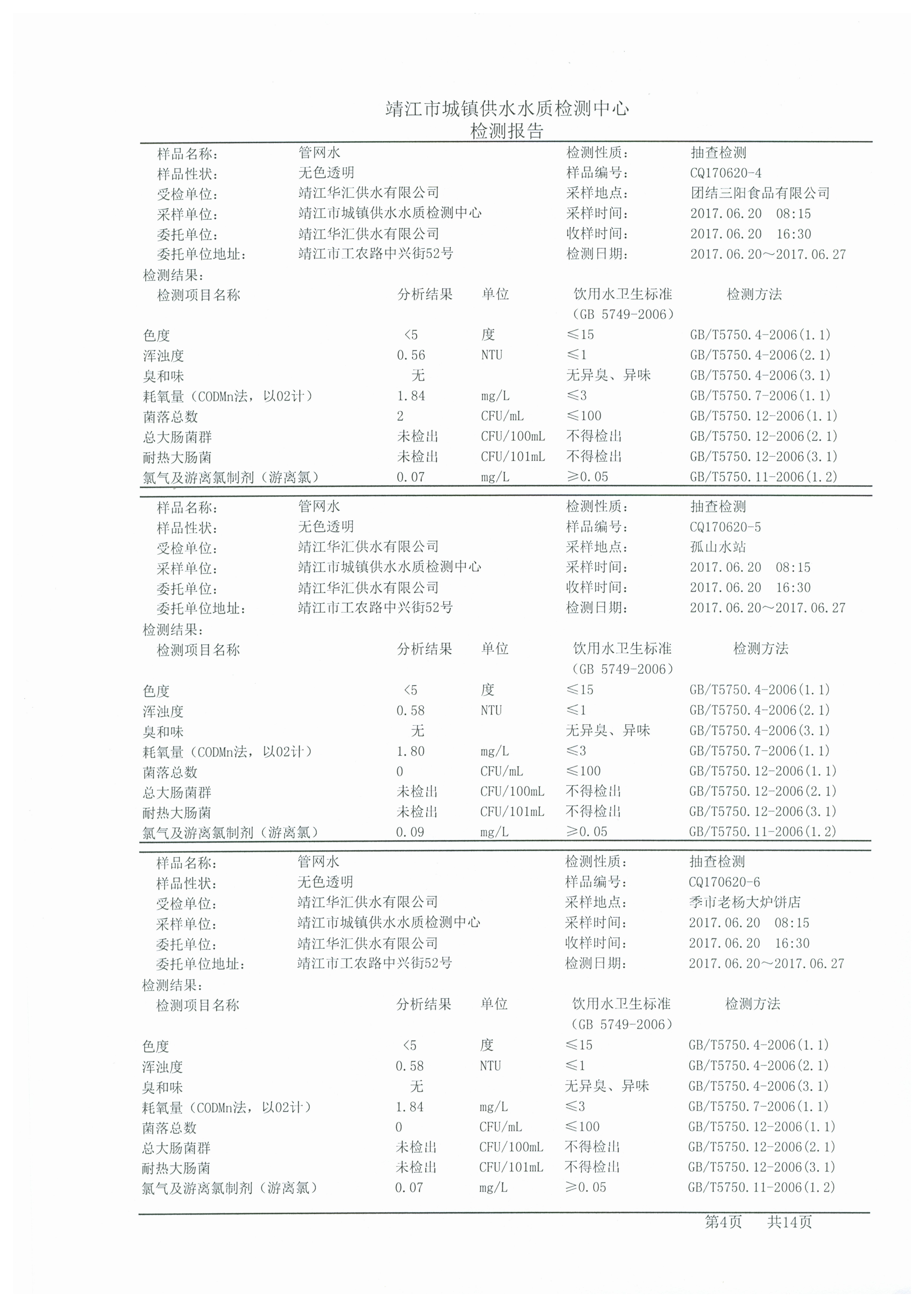 管網(wǎng)水質(zhì)檢測(cè)報(bào)告2017.06.20