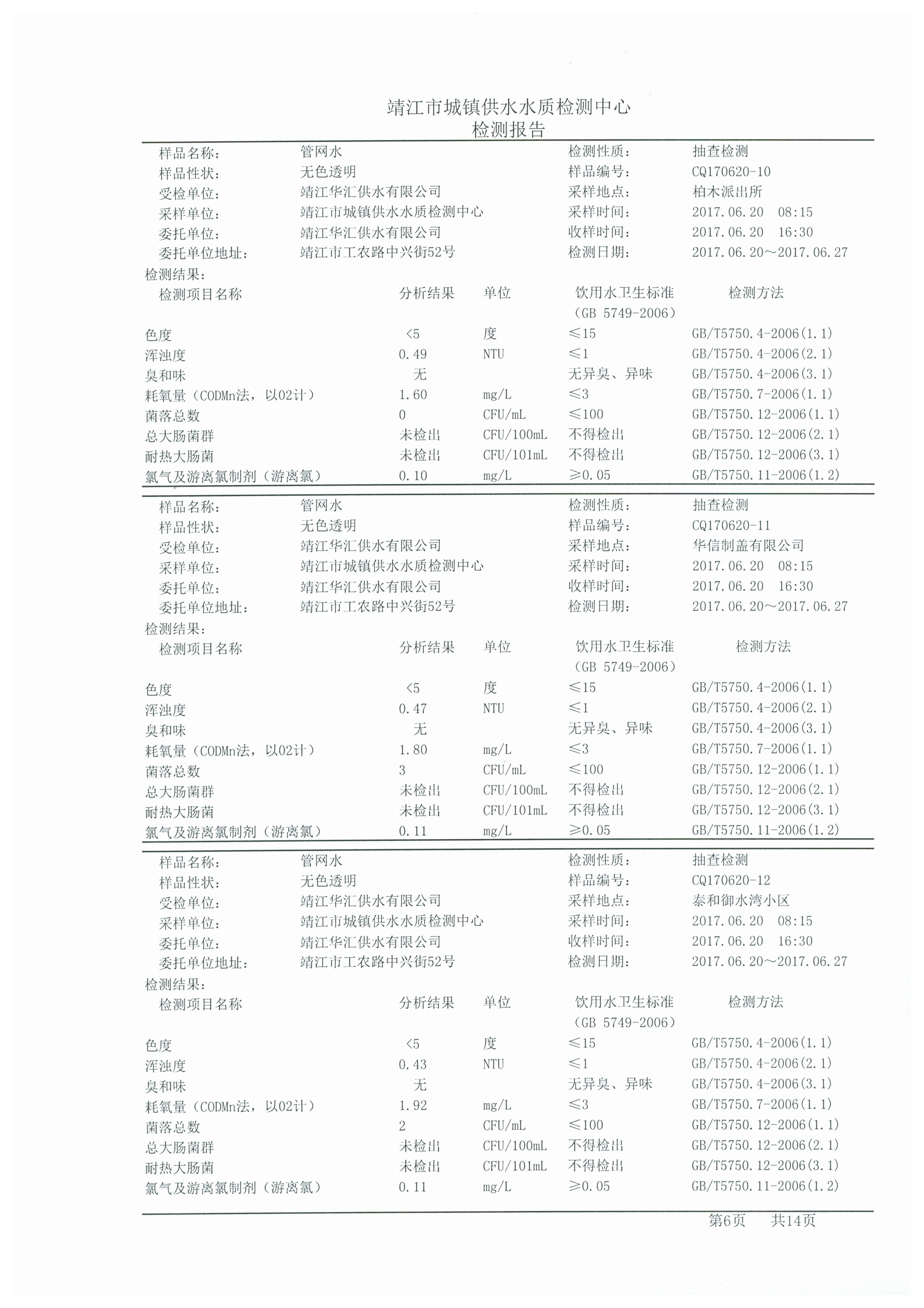 管網(wǎng)水質(zhì)檢測(cè)報(bào)告2017.06.20