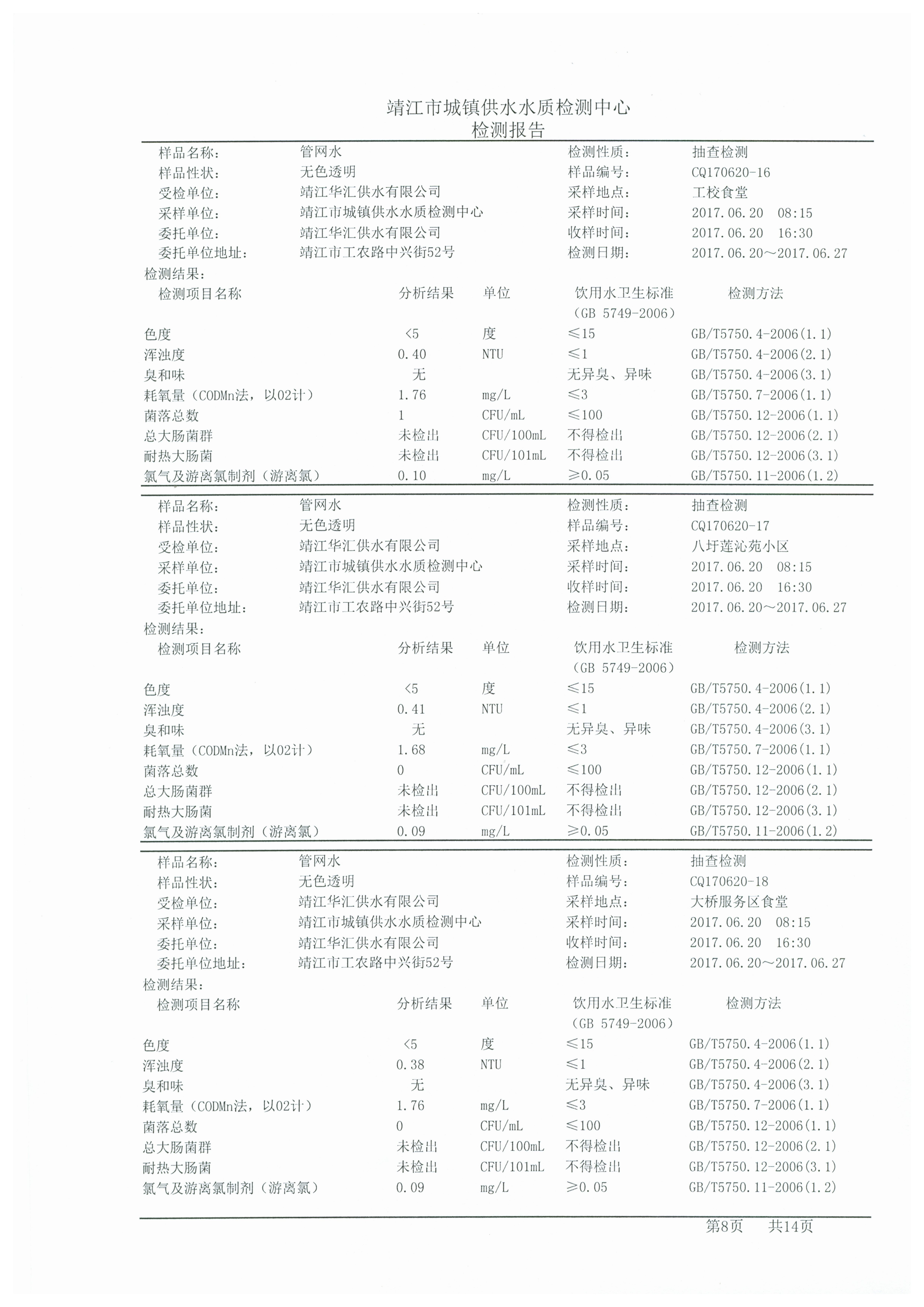 管網(wǎng)水質(zhì)檢測報告2017.06.20