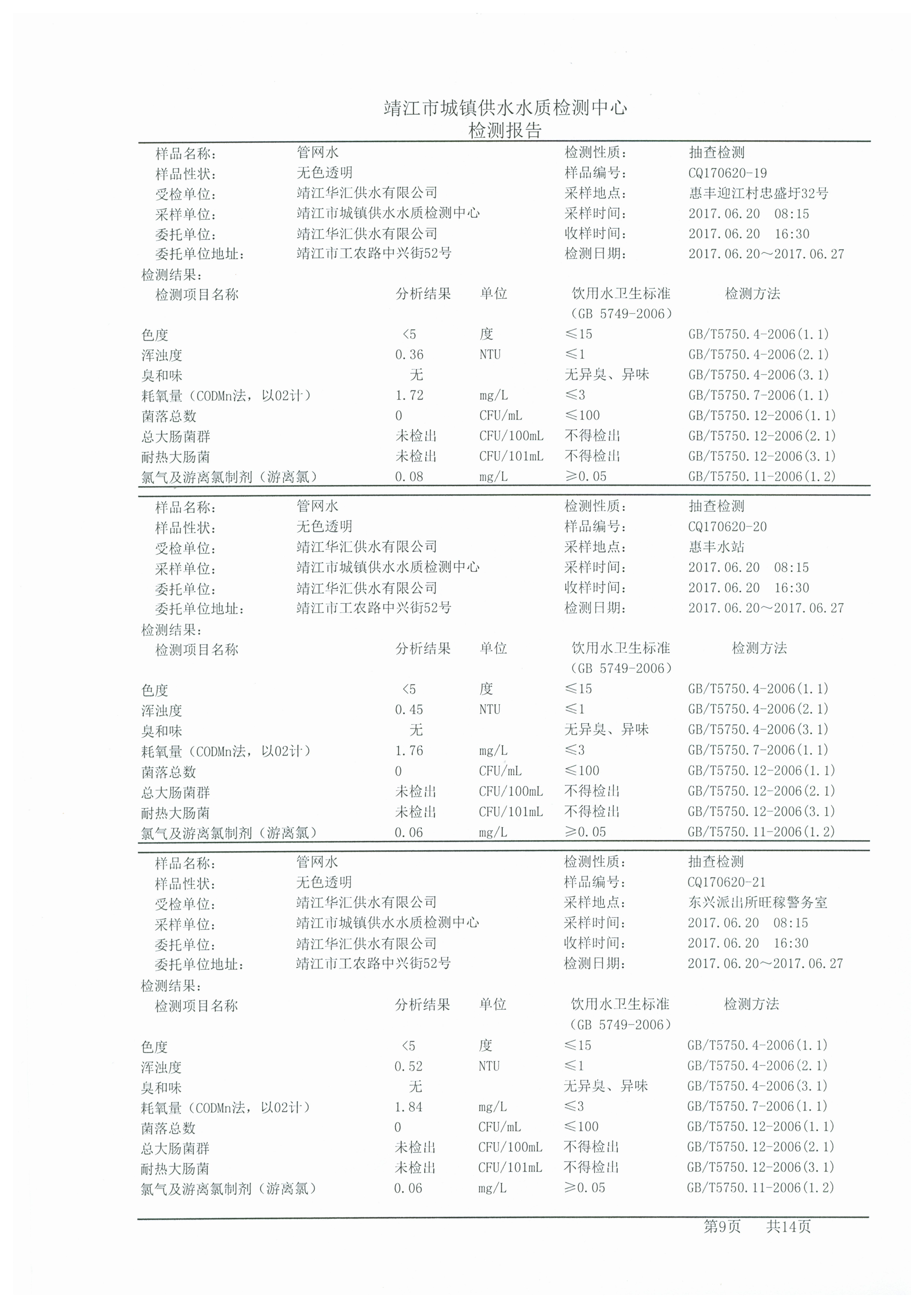管網(wǎng)水質(zhì)檢測報告2017.06.20