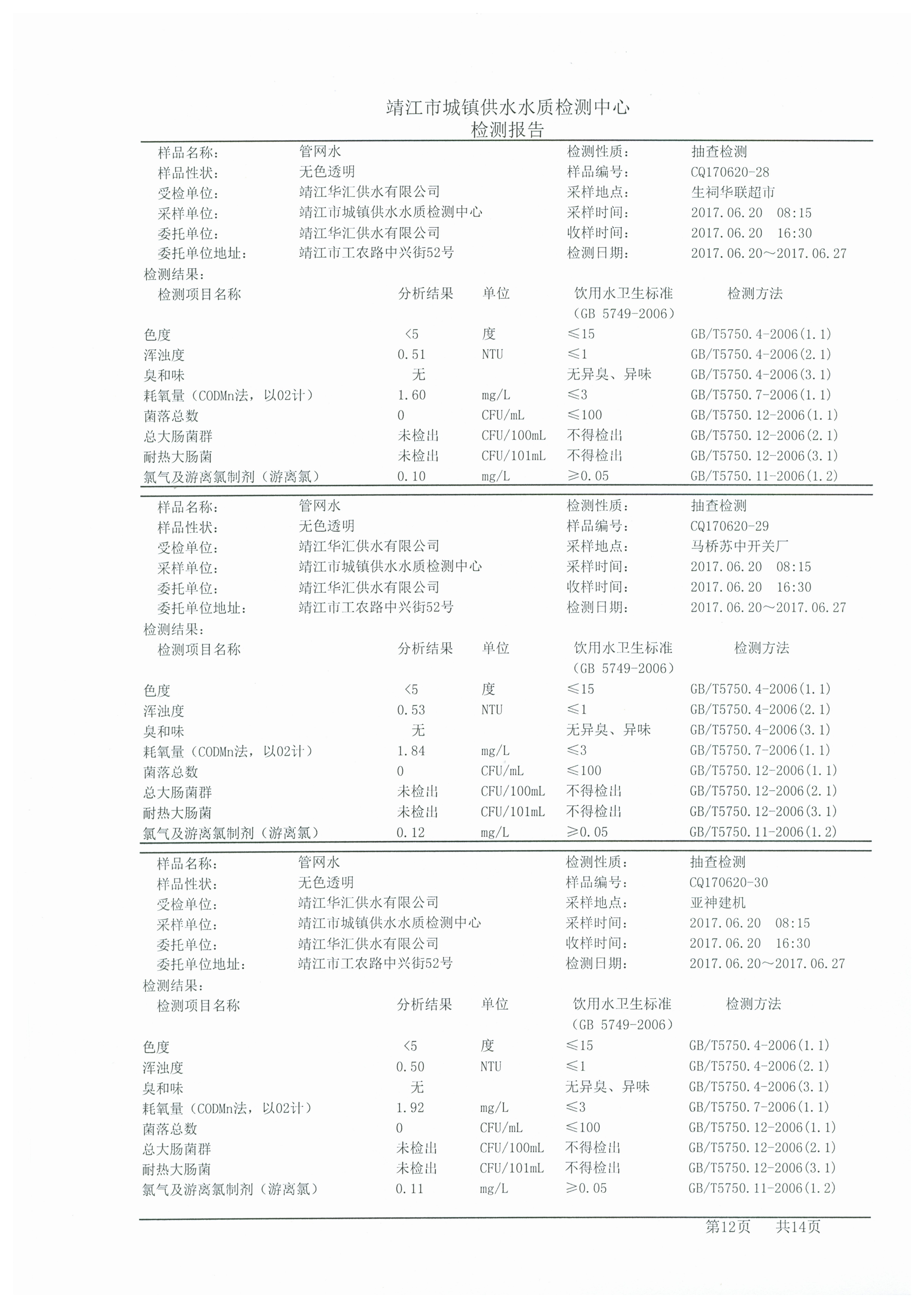 管網(wǎng)水質(zhì)檢測(cè)報(bào)告2017.06.20