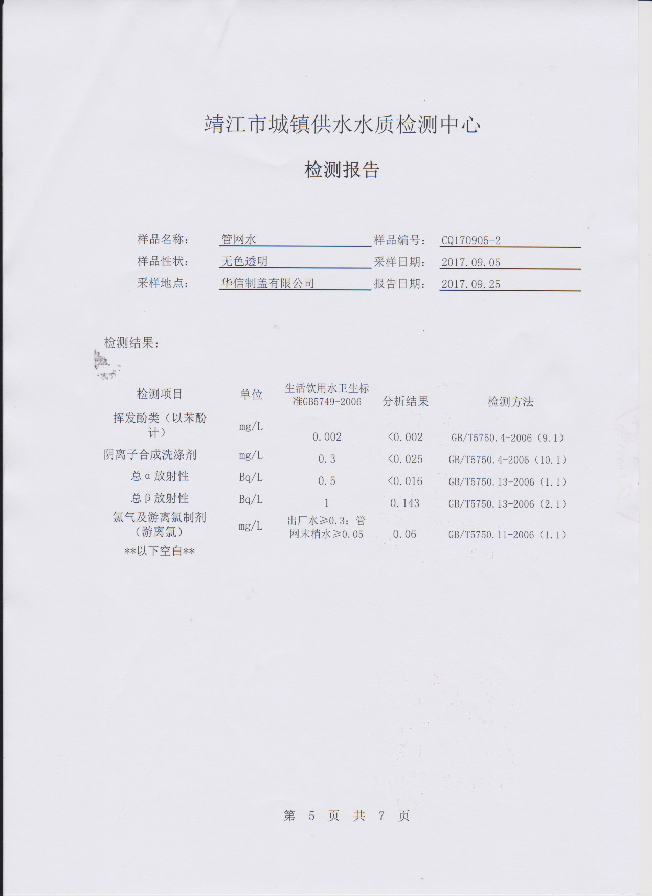 出廠水檢測報告2017.09.05