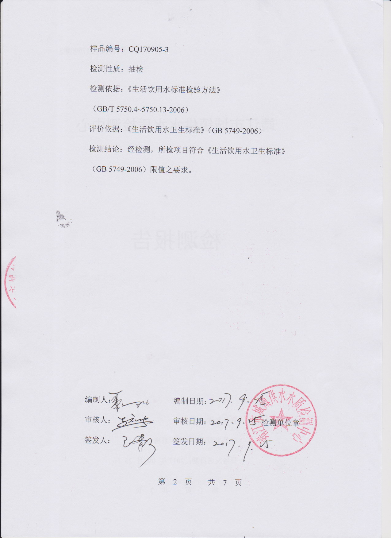出廠水檢測報告2017.09.05