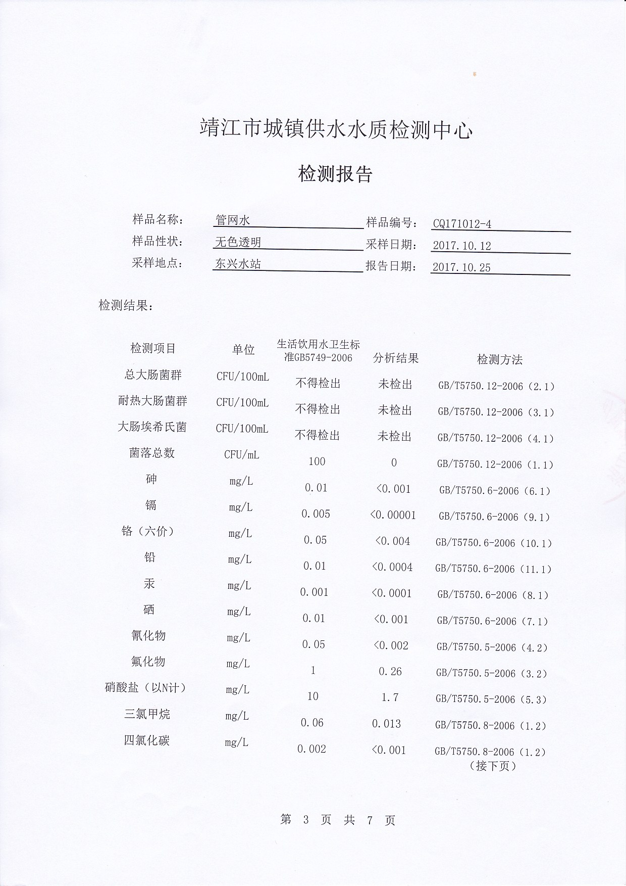 出廠水檢測報告2017.10.12