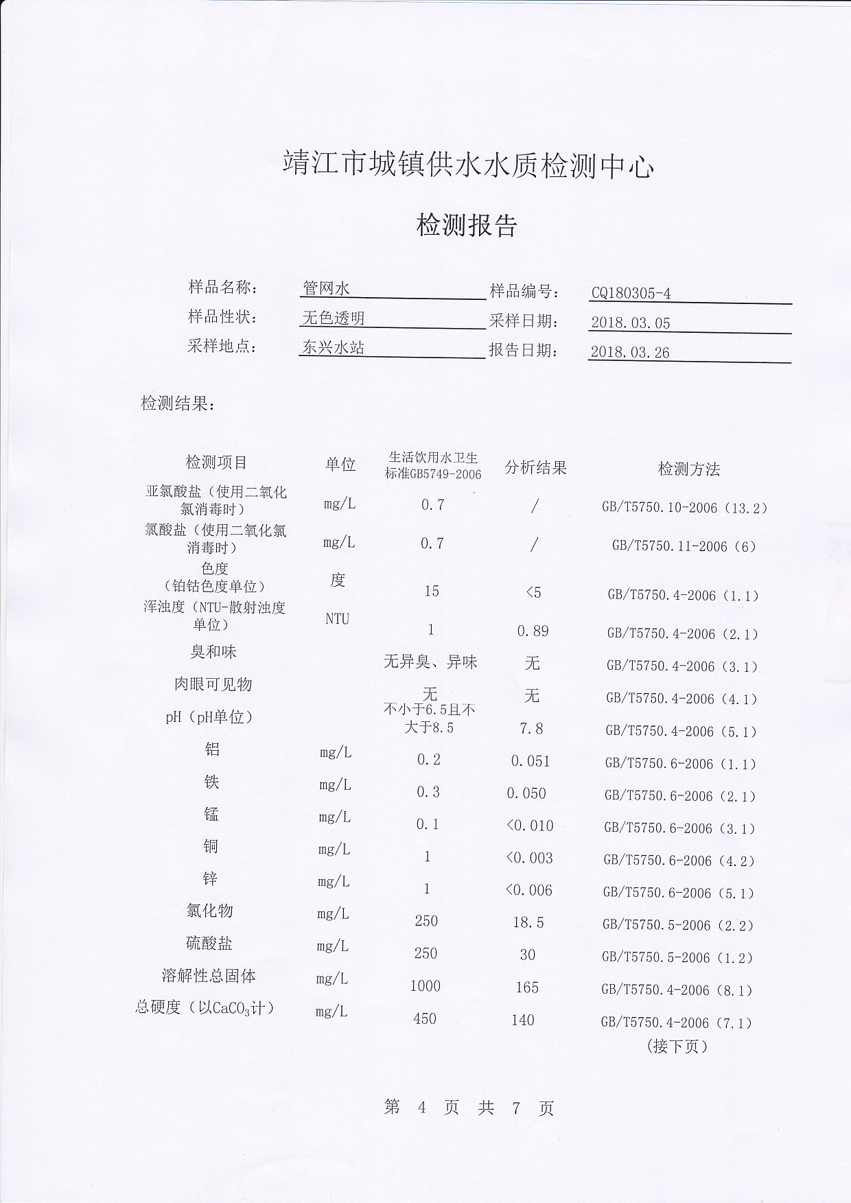 管網(wǎng)水檢測報(bào)告2018.03.05