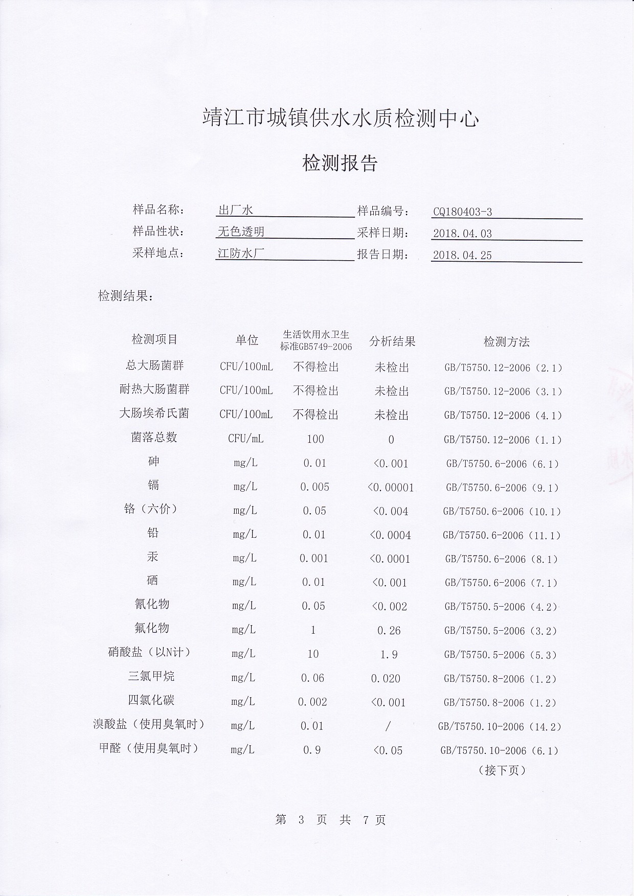出廠水檢測報告2018.04.03