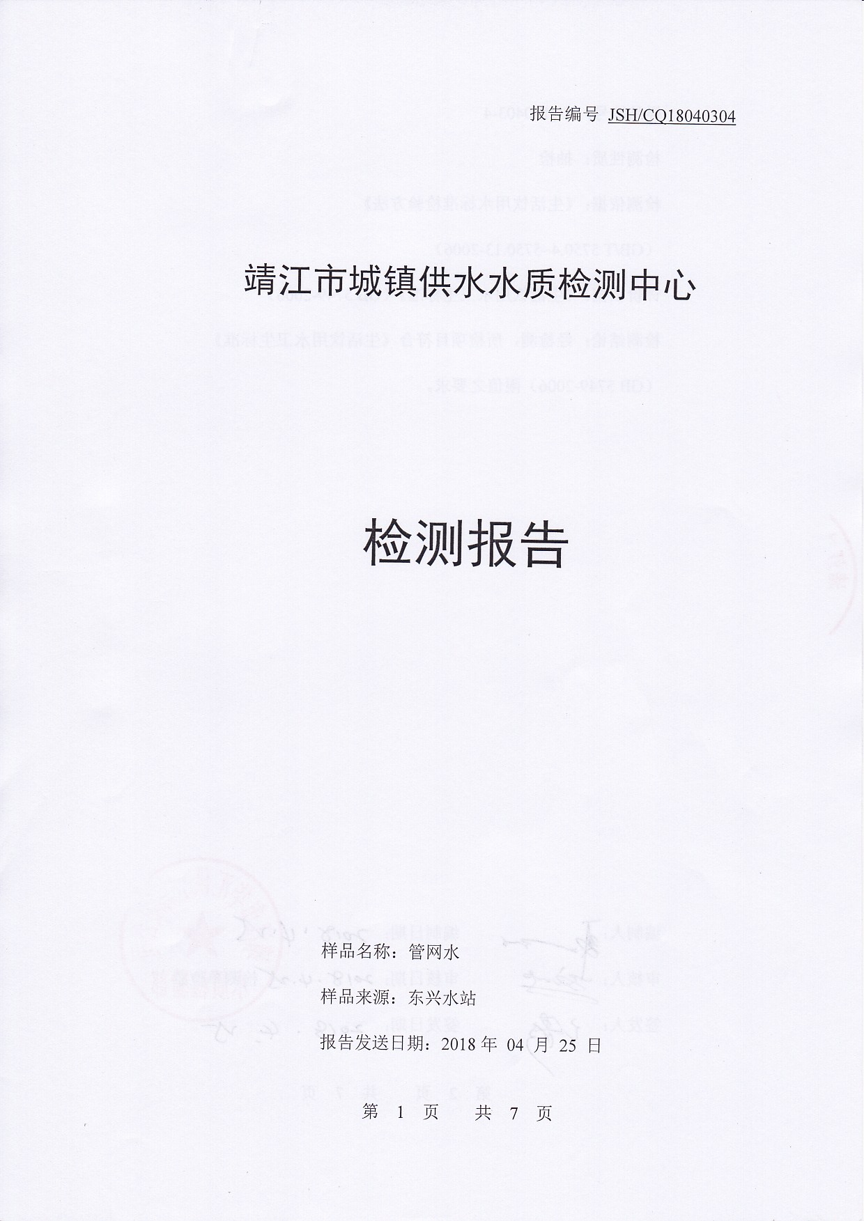 出廠水檢測報告2018.04.03