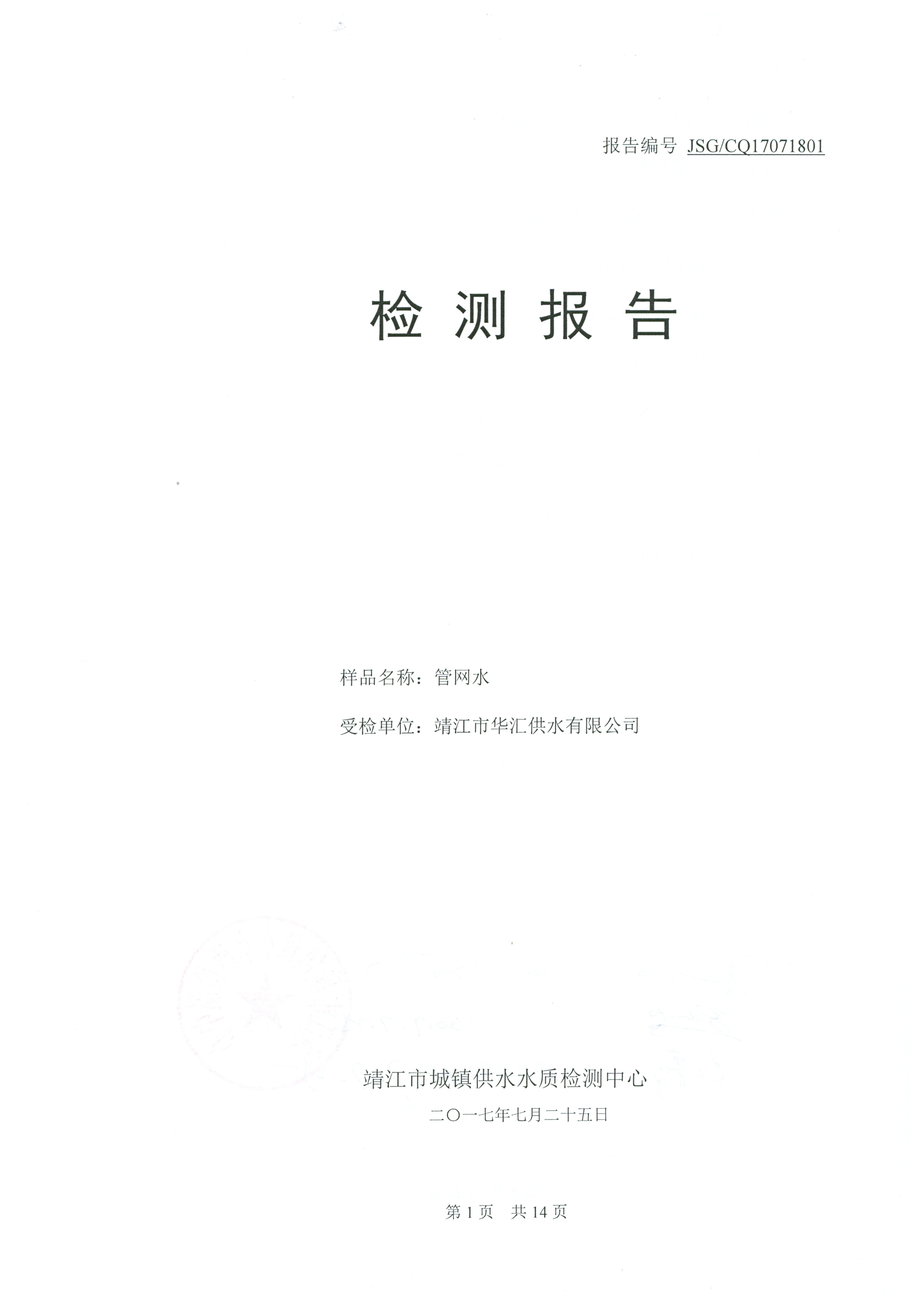 管網(wǎng)水質(zhì)檢測報告2017.07.18