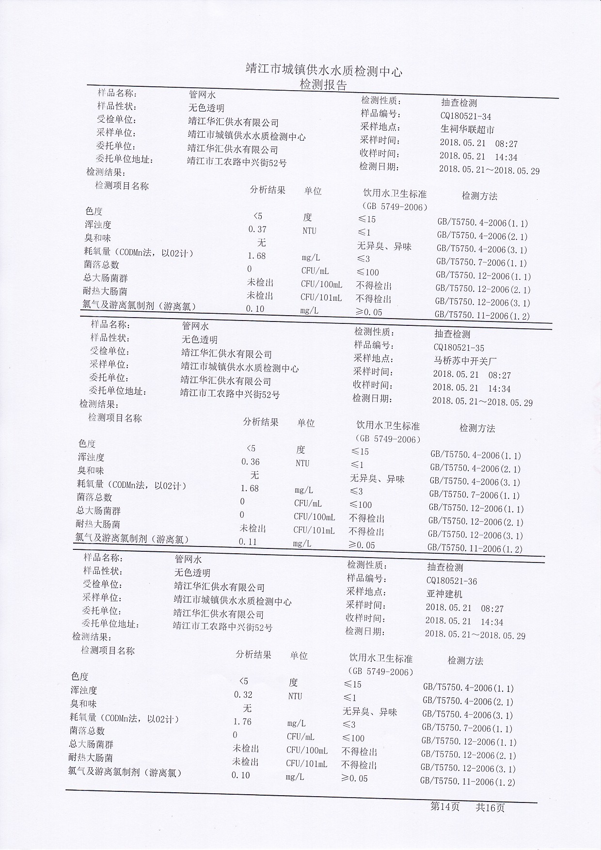 管網(wǎng)水檢測(cè)報(bào)告2018.05.21