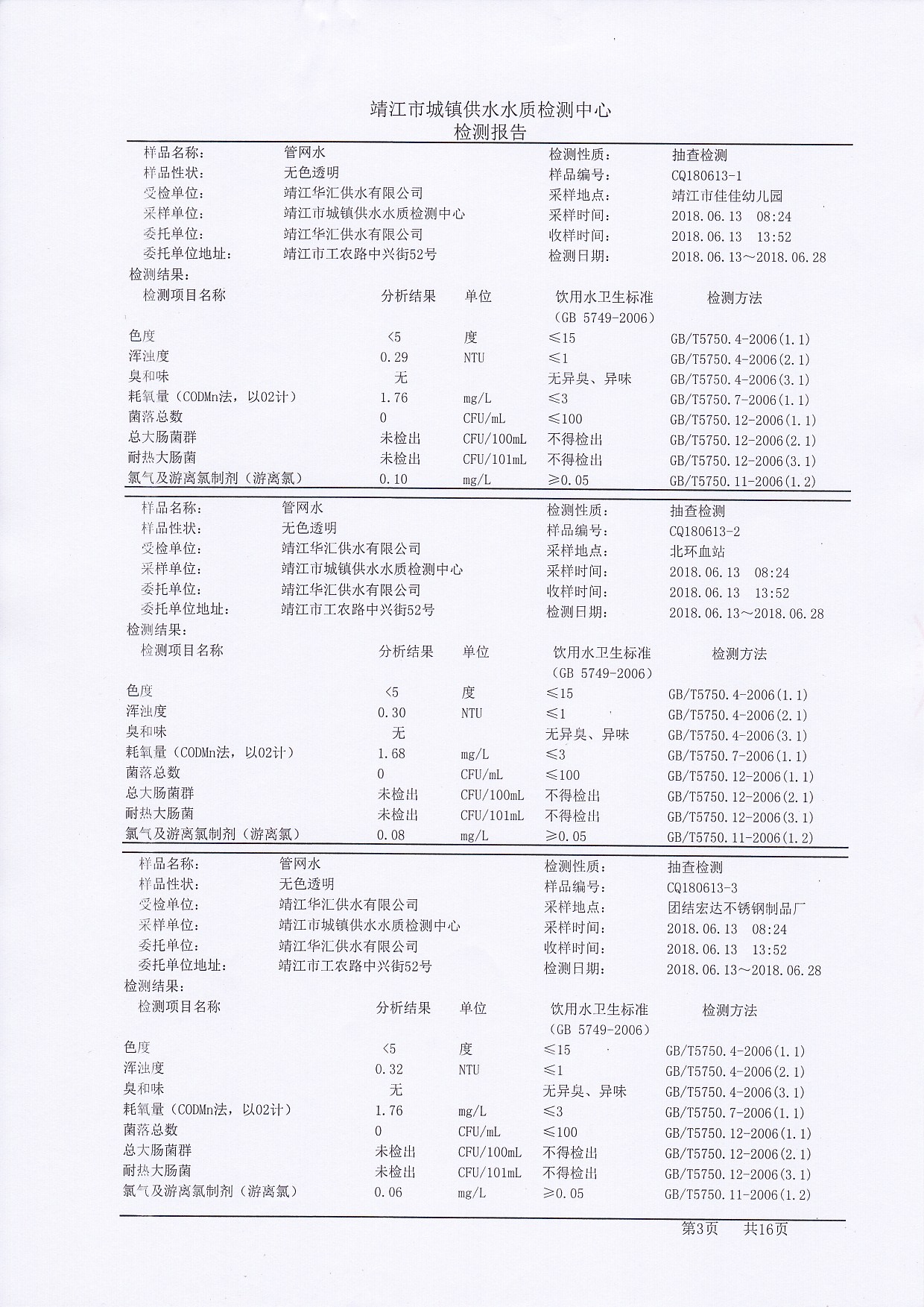管網(wǎng)水檢測(cè)報(bào)告2018.06.13