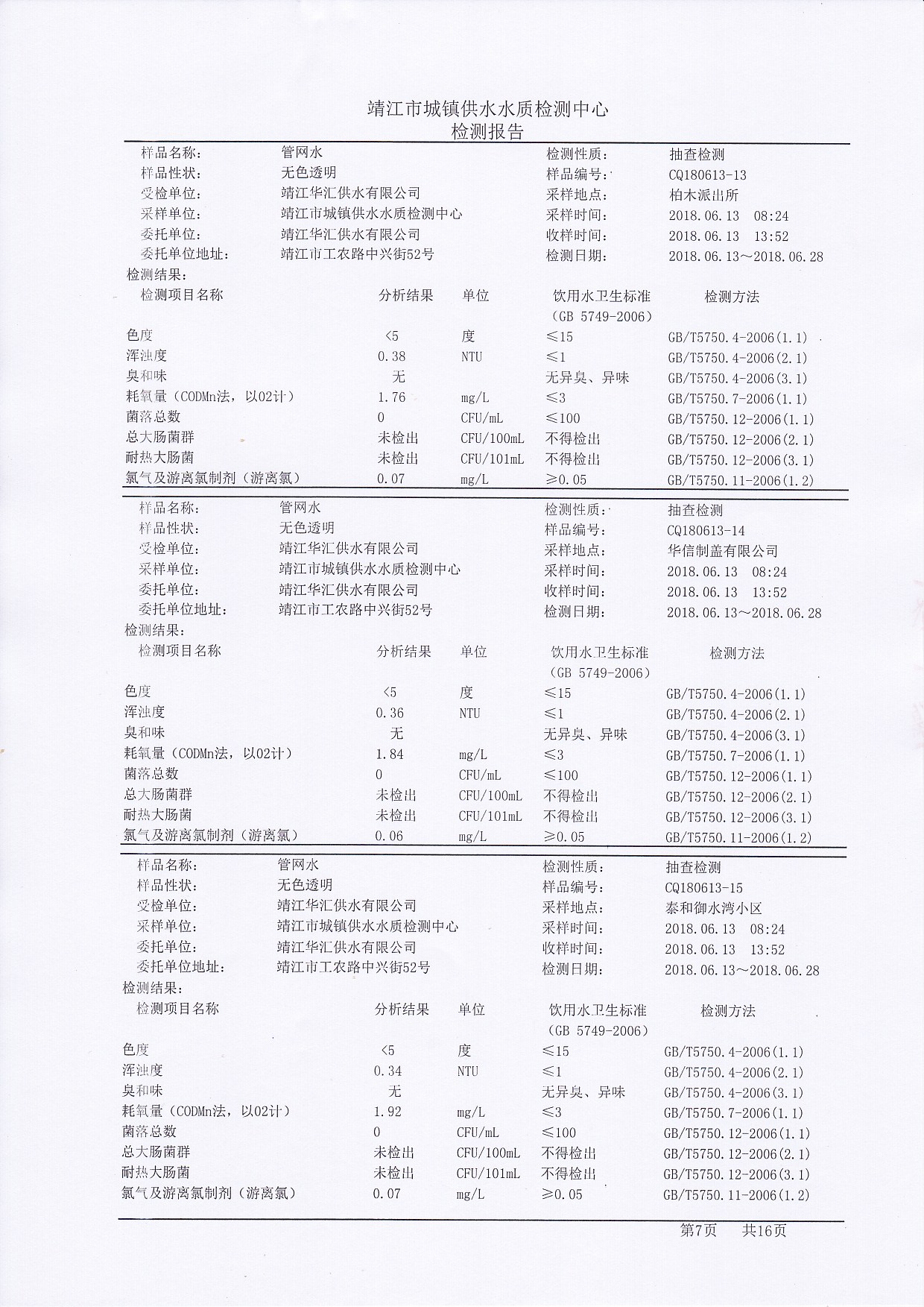 管網(wǎng)水檢測報(bào)告2018.06.13
