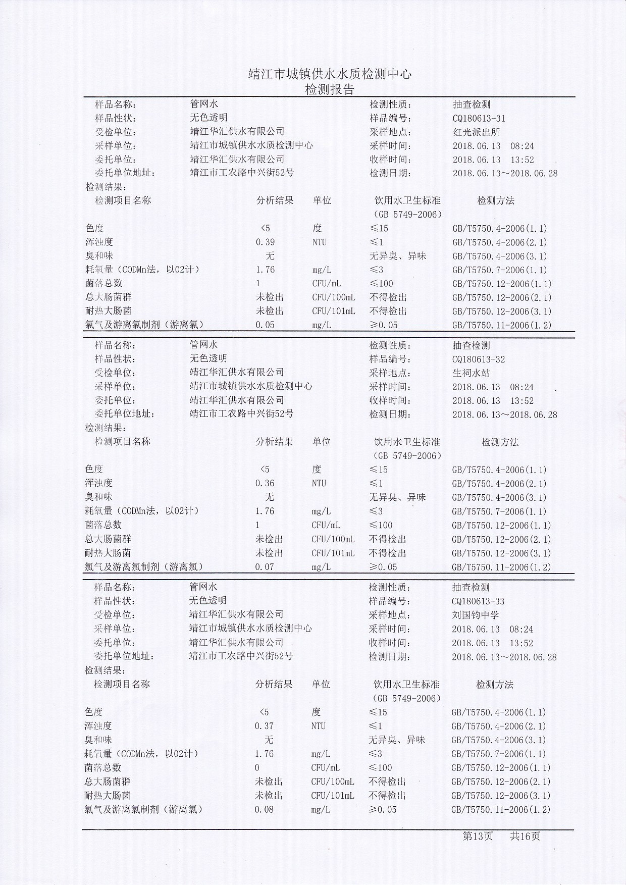 管網(wǎng)水檢測報(bào)告2018.06.13